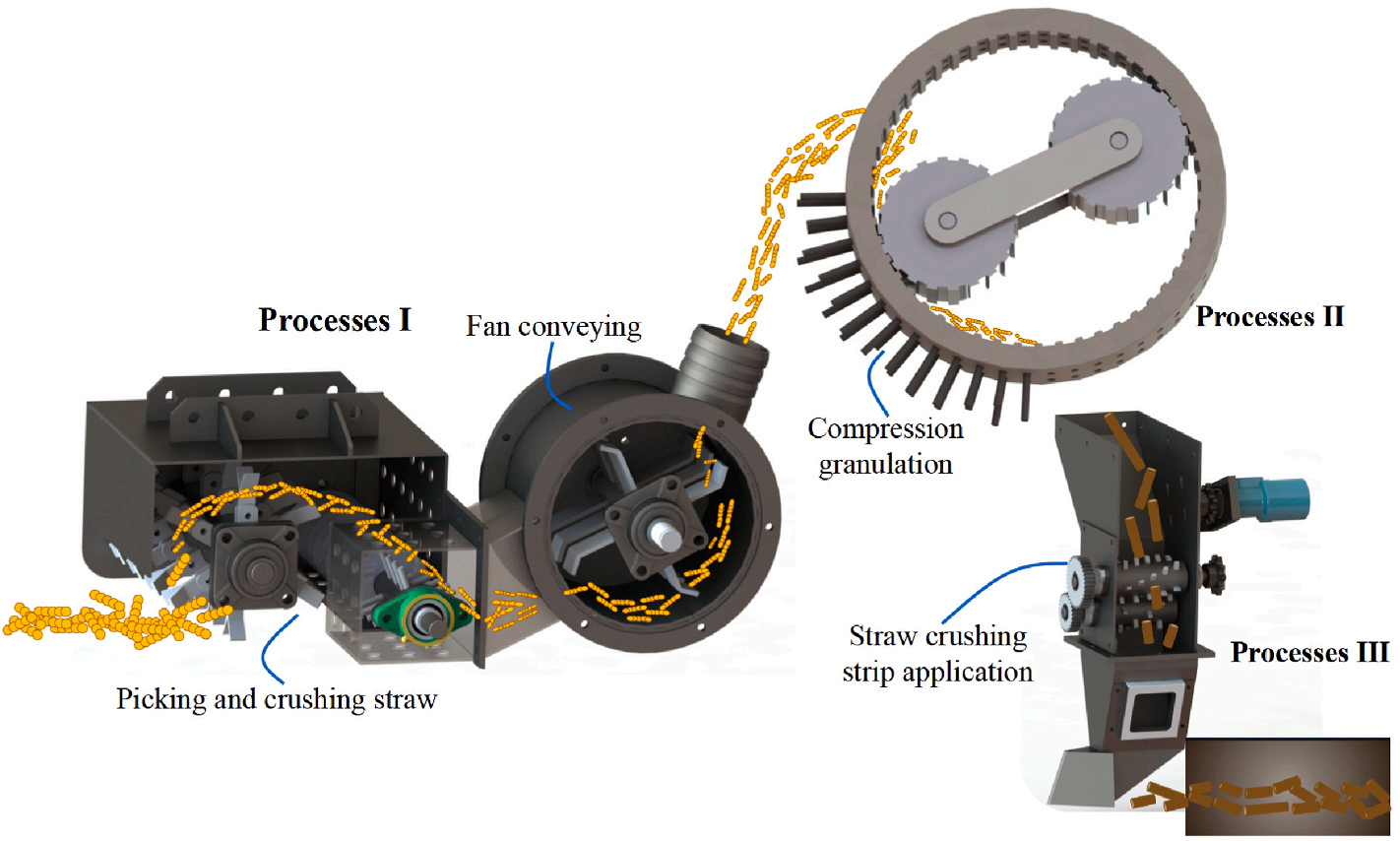 该研究旨在解决保护性耕作秸秆还田后,免少耕播种、条耕等作业环节易发生秸秆积聚堵塞等问题,通过将地表松散秸秆压缩制粒,利用对辊破碎条施还田,降低了地表秸秆覆盖量,避免了秸秆积聚堵塞问题。研究构建了制粒秸秆仿真模型,设计了制粒秸秆智能条施机,开展了田间验证,为制粒秸秆条施还田提供了技术与装备支撑。