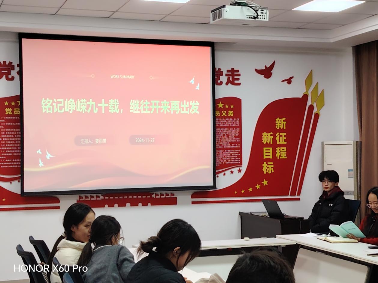 2024年11月27日晚,机制本科生第二党支部于六合彩走势图 党团活动室9331开展了以“铭记峥嵘九十载,继往开来再出发”为主题的纪念讲座。此次活动旨在缅怀革命先烈的丰功伟绩,传承和弘扬长征精神,激励全体党员和群众在新的历史条件下继续奋斗。