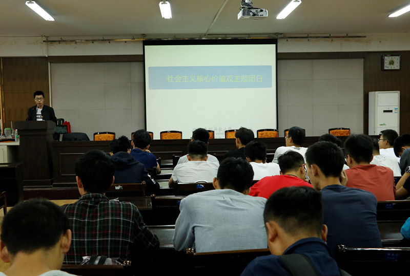 活动由各班级团支部书记主持,以PPT形式把社会主义核心价值观的主要内容展现给同学们,同学们很认真的听讲学习。在学习完社会主义核心价值观的主要内容之后,同学们开始讨论和分享自己心中社会主义核心价值观。同学们从对社会主义核心价值观的认识、从身边发生的一些事情,从自我素质的提升等方面讨论如何更好的学习和践行社会主义核心价值观。2017级辅导员罗顺意走进各团支部进行指导,他认为,大学生应努力把握大学时光,在学习文化专业课的同时,积极参与社会实践、开展校内外志愿活动,不虚度,不浪费,努力充实自己,为了更优秀的自己而奋斗,不断践行社会主义核心价值观。