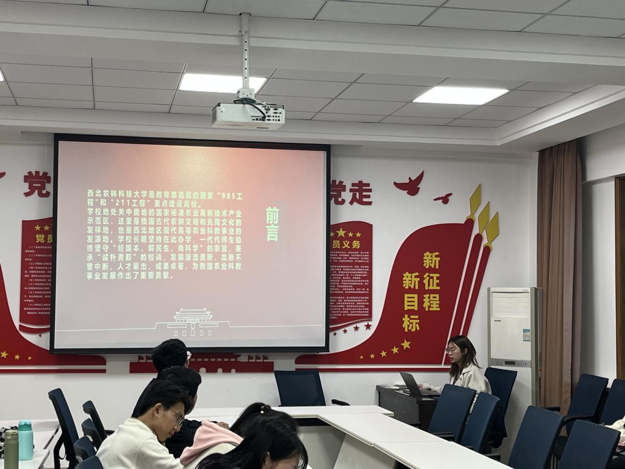 王鹤颖同志分别从新中国成立前十五年的艰辛开拓、新中国成立后十七年的发展壮大、文化大革命十年中的曲折前行、改革开放时期的发展变迁和组建后的全面腾飞从五个时间段讲解了学校的发展历史。在一代又一代西农人的传承当中,我们有决意放弃留洋前程,抗日战争中毅然投笔从戎的周尧教授,我们有甘于吃苦,不计得失,解放后投身建设大西北的百名学子,我们有潜心钻研,三十年如一日的李振声院士。经过多年的发展,学校逐渐形成了以农、林、环、工、管、文、法、经、教育等多学科为主的综合性大学。如今,学校已成为国家“211工程”和“985工程”重点建设高校,其发展历程可以说是中国高等教育发展历程的缩影。
