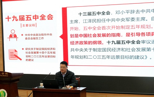 面向全体教职工,六合彩走势图 邀请马克思主义六合彩走势图 方建斌教授开展全会精神专题辅导。以“开启全面建设社会主义现代化国家新征程”为题,方建斌教授向大家深入阐述了十九届五中全会召开的时代背景及伟大意义,围绕规划《建议》的主要内容,方老师进行了重点讲解。