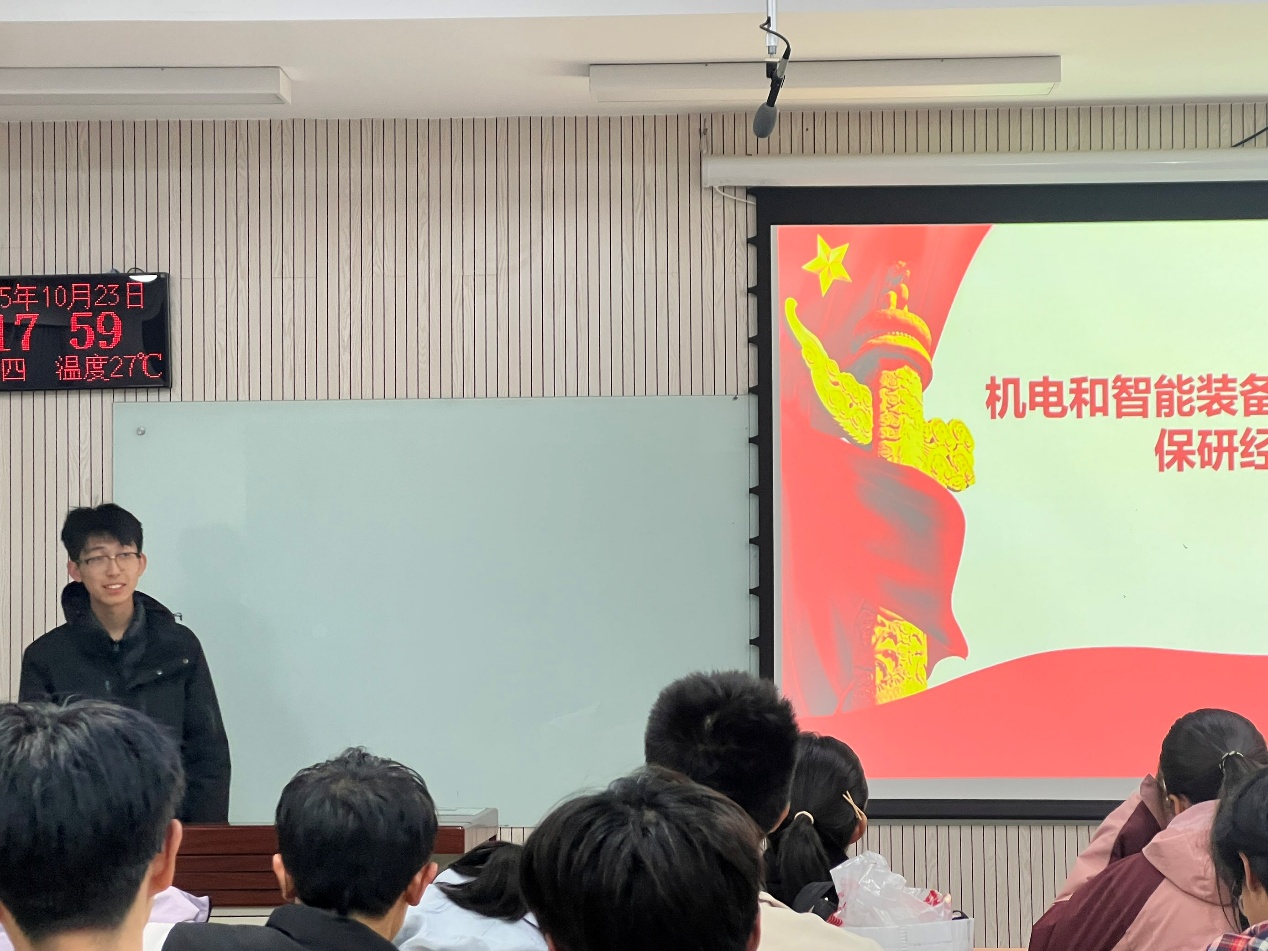 机电和智能装备工程本科生党支部开展“保研经验交流分享会”专题政治理论学习2025 年 10 月 23 日晚 18 时,机电和智能装备工程本科生党支部“保研经验交流分享会” 在八教 8217 教室如期举行。本次分享会邀请多位成功保研的学长学姐,围绕保研政策解读、个人经验分享、备考技巧传授等核心内容展开,为在场同学搭建了获取保研干货、明确升学方向的优质平台。