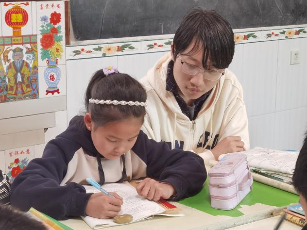 为了尽可能将此次支教活动的效益最大化,在和小朋友们打了招呼,互相结束自我介绍后,便给每位小朋友都分配了一名“老师”,立即开始了正式的教学活动。