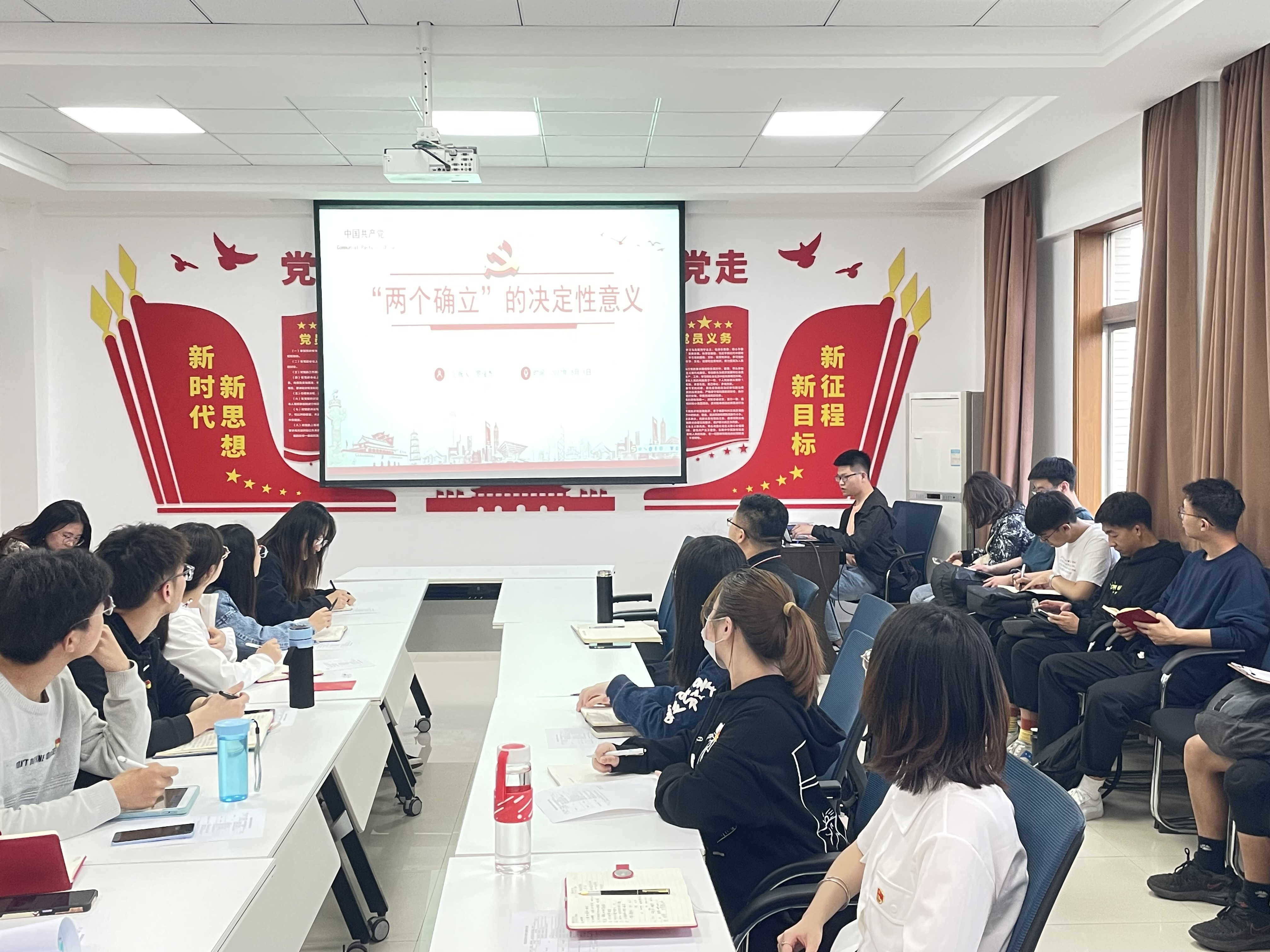 为了深刻领会“两个确立”的内在联系及其背后的深层逻辑,增强支部党员践行“两个确立”的思想自觉、行动主动,5月11日,六合彩走势图 电信本科生党支部开展以“深刻领会‘两个确立’的决定性意义”为主题的政治理论学习,深入浅出的讲解“两个确立”的重要性和发展历程。