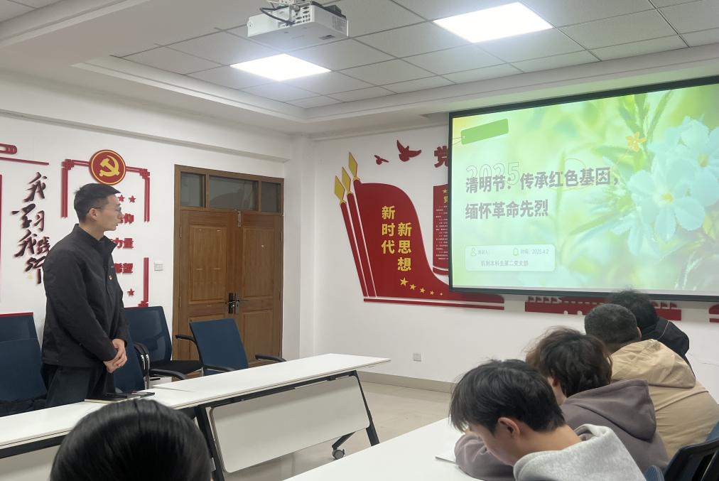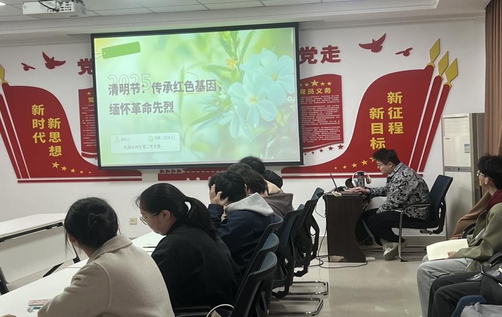 为深入学习贯彻党的二十大精神,加强党员思想政治教育,弘扬爱国主义精神,发扬红色传统。机制本科生第二党支部于4月2日在六合彩走势图 党团活动室9331组织开展了“传承红色基因 缅怀革命先烈”的政治理论学习活动。本次学习主讲人为徐培华同志,支部各同志积极学习并参与讨论。