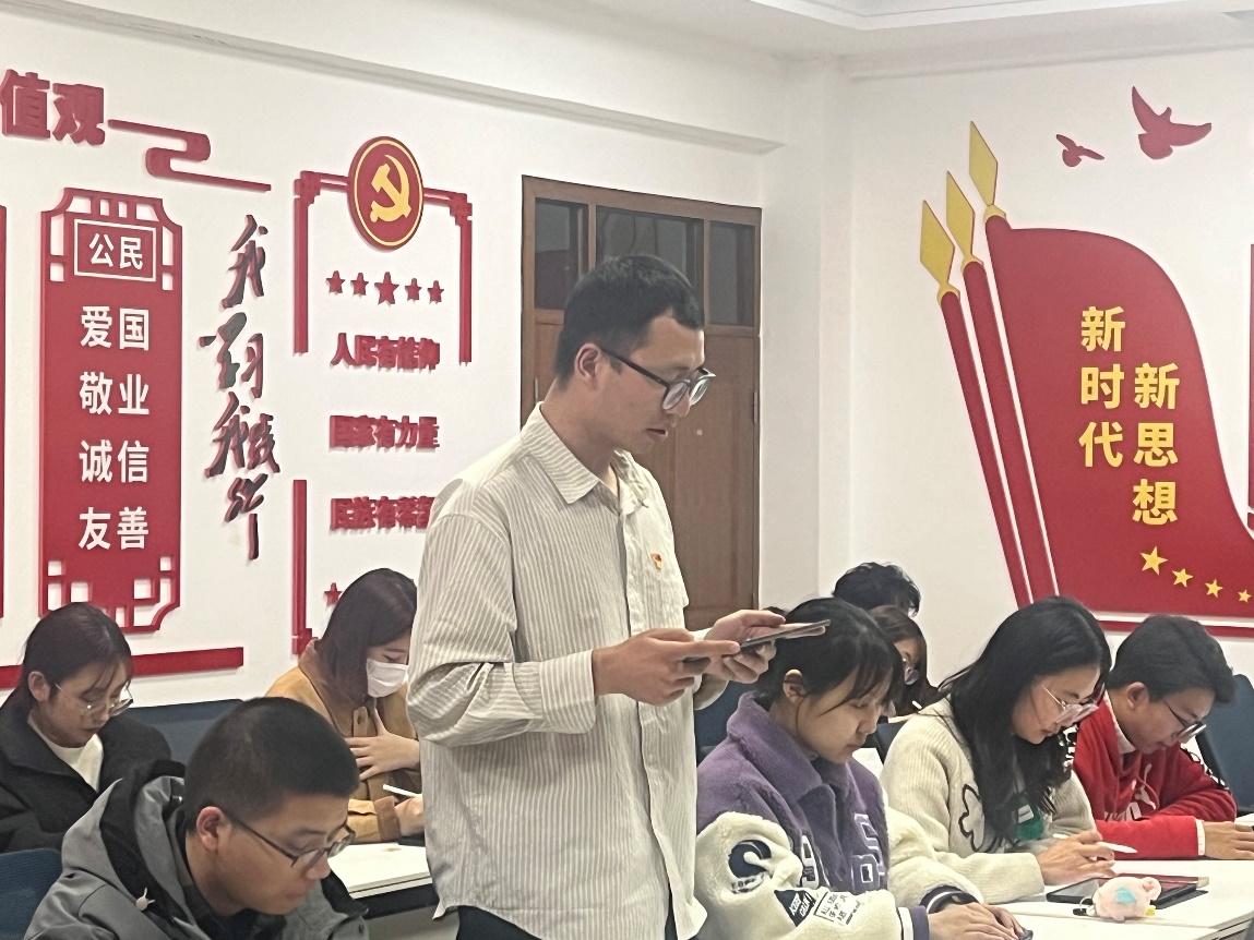 参会同志就学习内容进行探讨交流,陈阳同志说到:“中共二十大是中国共产党历史上的一次重要会议,是对过去五年工作的总结和未来五年发展的规划。在报告中,习近平总书记提出了一系列重要思想和方针政策,为实现全面建设社会主义现代化国家的目标指明了方向。通过学习这份报告,我深刻地认识到两点。第一,中国共产党是一个非常重视人民利益的政党。第二,中共二十大报告明确了中国的发展目标和方向。我相信,在中国共产党的领导下,中国一定能够不断取得更加辉煌的成就,早日实现中华民族的伟大复兴。”周子奥同志也分享到:“在中共二十大报告中提到了对全党同志“三个务必”的要求,这是党对我们的期望和要求,我们全党同志务必不忘初心、牢记使命,务必谦虚谨慎、艰苦奋斗,务必敢于斗争、善于斗争。“三个务必”相互联系又自成体系,向外界阐释了中国共产党遵循的宗旨、坚守的作风和发扬的精神。做到“三个务必”,坚定历史自信,增强历史主动,中国共产党人必将在新征程上谱写出新时代中国特色社会主义更加绚丽的华章。”
