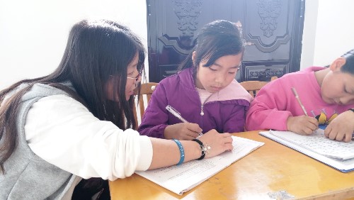 经过半个多小时颠簸,志愿者们准时抵达目的地。孩子们见到志愿者的第一句话就是“大哥哥,你们来啦!还有几个同学正在做农活,过会儿就会来。”这让志愿者们心里暖暖的。