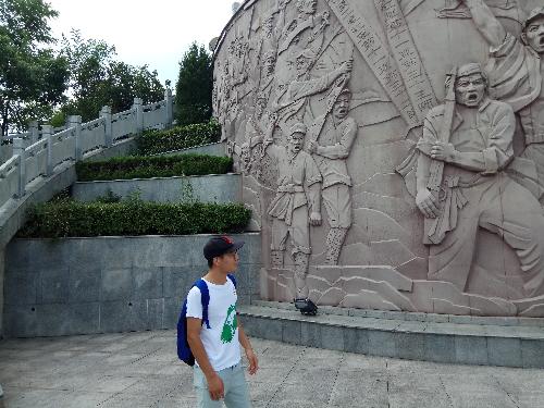 爬上台阶后,一组名为《浩气长存》的浮雕赫然挺立,其展示了金寨境内爆发的立夏节起义和六霍起义并相继诞生和组建了中国工农红军第11军32师和33师的情景,他们是金寨境内最早成立的两大红军主力队伍。看着浮雕,队员们仿佛置身于那个烽火燎原的革命年代,心潮澎湃,深受鼓舞,纷纷表示,将沿着革命先辈的足迹继续前行,继承革命先烈的遗志,发扬新时代“红军精神”,践行“两学一做”,做一名合格当代大学生,全心全意为人民服务,弘扬社会主义核心价值观,为社会主义事业发展贡献力量。