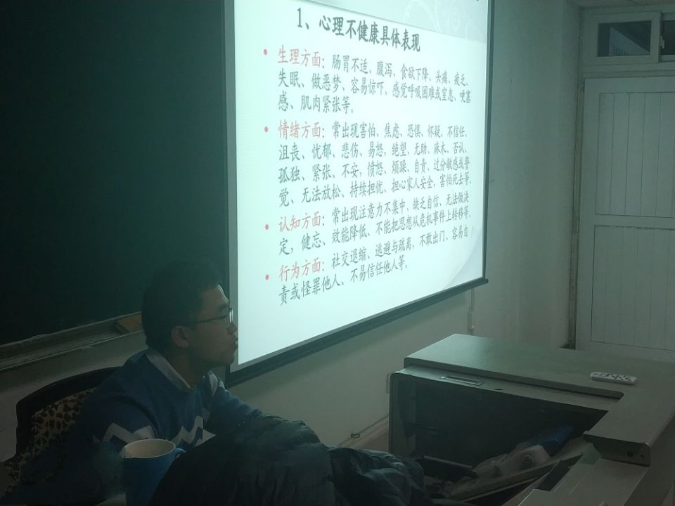 本次心理健康培训会针对性的解决了大学生常见的心理问题,同时对一些常见大学生心理问题做了预防。同时,培训会使各班心理委员意识到了自己的职责,为班里同学解决感情失利,压抑情绪等心理问题。