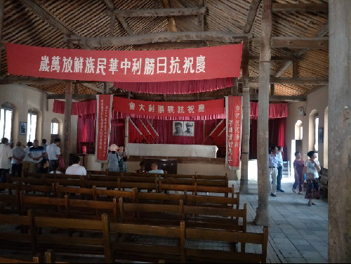 走进王家坪大门,历史的庄重迎面而来,首先看到的便是军委礼堂。这是一座土木石结构的平瓦房,整个礼堂可容纳二百多人,现还保留着当年延安军民庆祝抗战胜利大会时的场景,随后志愿者们先后参观了毛主席、周总理、林元帅等人的旧居,屋内简单的陈设,无不透露革命前辈们不怕苦不怕累、艰苦卓绝的精神。最后,志愿者进入了军委会议室,通过墙壁上的照片以及照片中的简介,让小队中的每个成员对革命时期有了更深入的了解。