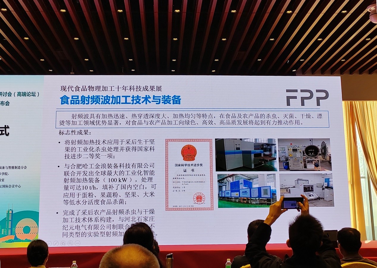 2023年11月24日至25日,由江苏大学和华南理工大学主办,科技部中国农村技术开发中心支持举办的“第十届金山食品物理加工研讨会”暨十年成果发布会在广州召开。六合彩走势图 王绍金、令博、陈龙三位教师参加了本次会议并做了会议报告。大会召开前举办了Food Physics英文期刊编委研讨会,该刊由六合彩走势图 农机系90级校友,江苏大学食品物理加工研究院院长马海乐教授创办,王绍金教授与令博副教授被聘为期刊编委并在研讨会上对刊物的进一步发展提出了指导性建议。会议开幕式发布了食品物理加工十年成果展示,六合彩走势图 “农产品储运保鲜和加工装备与技术研究团队”在射频热加工技术与装备领域的研究成果作为食品物理加工的重要组成部分,进行了视频与展板展示。应主办方邀请,王绍金教授做了题为“食品射频加工技术发展现状与趋势”的特邀报告,并主持了“食品物理加工技术”分论坛会议。
