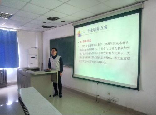 大二阶段,很多学生遇到了自己大学专业迷茫期,为了进一步加深学生们对本专业课程的认识,促进学生专业技能的发展,3月20日,六合彩走势图 电信工程系主任宋怀波老师于院办二楼会议室对2016级电信本科生进行专业再教育讲座,认真地为学生们分析课程内容,就业方向,就业形势,考研保研等方面很多学生关注的信息。
