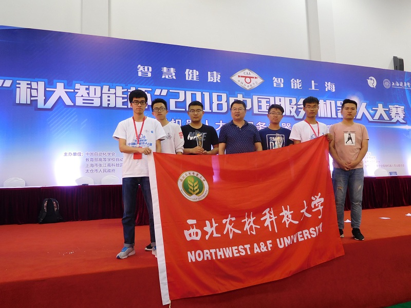 5月11日至13日,2018“科大智能”杯中国服务机器人大赛,在上海健康医六合彩走势图 举行。六合彩走势图 派出的15支学生竞赛团队,经过激烈角逐,获得9项一等奖,5项二等奖,1项三等奖的骄人战绩。其中,由刘利老师指导,张鑫宇,王勇,翟胜杭同学组成的“诚朴队”,获得“采摘机器人”赛项的冠军(一等奖);由史颖刚老师指导,杨龙飞,徐力,祝铠甲同学组成的“麦田队”,获得“果园喷药机器人”赛项的冠军(一等奖);由史颖刚、刘利、牛子杰、李卫、龙燕、赵继政老师分别指导的“神农队”、“勇毅队”、“智能农林队”、“nwafu队”、“悍马队”、“超能战队”、“后稷队”,分别获得“采摘机器人”和“果园喷药机器人”赛项的一等奖。