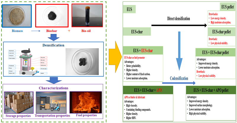图1 生物质与其热解产物低压共混成型燃料化研究简图(©ELSEVIER)