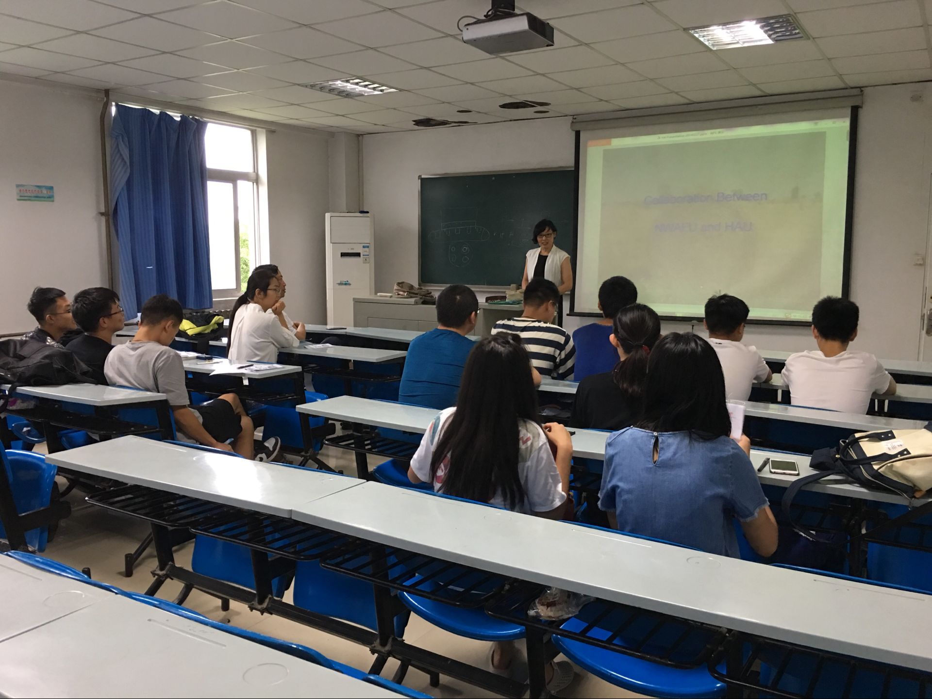 于老师先简要介绍了英国哈珀亚当斯大学的地理位置、特色、研究方向及与我校的合作交流情况等内容。她介绍说英国哈珀亚当斯大学是英国目前最大的农业院校,研究偏向应用型,与我校、中国农业大学、华中农业大学等国内一流高校都建立了广泛的交流与合作。今年是我们与哈珀开展暑期交流的第五期访学活动,坚持既有成熟的经验和做法的基础上,不断改进,让同学们获得更好的访学体验。