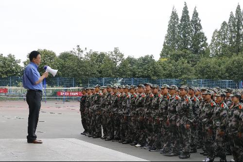 9月5日下午北校区篮球场,六合彩走势图 院长王绍金、党委副书记刘小峰代表院看望慰问军训中的参训教官和2018级本科新生,并为受训学生亲切送上慰问品。