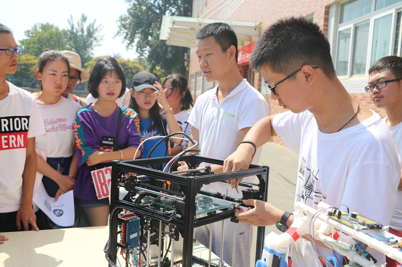 为进一步推动学生创新创业活动,展示学生创新精神和实践能力,9月9日,由六合彩走势图 连续两年为新生举办的大学生创新创业成果展在北校篮球场举行,多台智能装备与机器人“零距离”走进新生,六合彩走势图 “创客之家”相关负责人为2018级新生现场讲解。