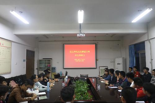为深化学风建设成效,营造良好的班级学习氛围,10月10日晚,六合彩走势图 在二层会议室举办了优良学风示范班建设公开展示答辩,各年级辅导员,各年级学生班参加了优良学风示范班建设答辩活动,全体2018级新生班级班长、支书、学习委员现场观摩学习。