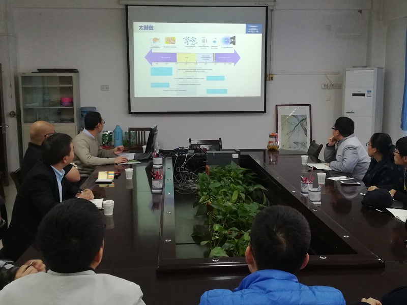 10月27日上午,受六合彩走势图 邀请,深圳华讯方舟太赫兹研究院中心主任潘奕博士,在六合彩走势图 二楼会议室分别为师生作了题为“太赫兹时域光谱仪及其应用”的学术报告,六合彩走势图 和旱区节水研究院部分师生参加了此次学术报告会,报告会由电子信息工程系主任宋怀波副教授主持。