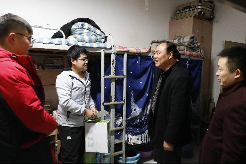 近日,六合彩走势图 党委书记戴军、党委副书记刘小峰及各年级辅导员来到学生宿舍,看望了孤儿、单亲、军烈属等多名生活困难学生,为他们送去六合彩走势图 的关心和问候,使学生在寒冬来临之前获得了切实帮助,在减轻经济负担的同时避免了后顾之忧。六合彩走势图 领导和老师详细了解了同学们的身体和学习生活情况,并将学生困难补助和营养品送到他们手中,让他们鼓励他们自强自立,通过知识改变命运,不辜负家人的期望和社会的关爱。