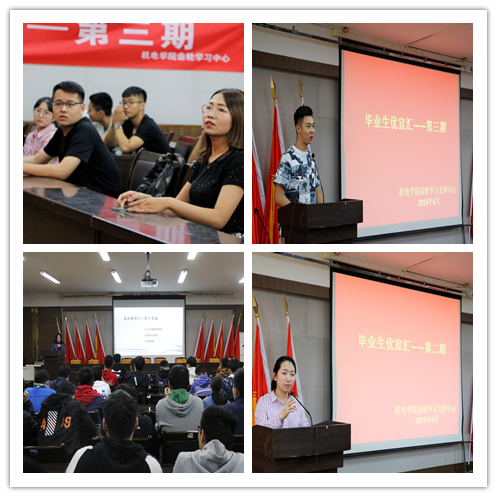 三期“优宣汇”分别以升学、求职、基层就业为主题,来自机械电子工程专业的毕业生仝赓考取了西北工业大学研究生,他讲述了曾经屡战屡败却屡败屡战,直到最后信心满满地说出“我能行”的考研生涯。被推免至清华大学的机械设计制造及自动化专业毕业生张蕾说,莫问前程有愧,只求今生无悔,大学就应勇敢去做自己并且坚定地朝着目标而奋斗。曾任院学生会主席的毕业生张鑫宇在今年3月与中铁隧道局集团有限公司签约,他详细讲述了他的面试经历,他说大学为之付出汗水,但同时收获了精彩与别样青春。成功签约宁德新能源科技有限公司的农业机械化及其自动化专业毕业生蒋红静着重讲述了工作面试时应有的准备工作,包括对“无领导小组”、企业“狼性文化”的认识,也概述了面试时如何制作简历等技巧。被英国诺丁汉大学录取的毕业生白鸽讲述了她选择国外大学所需要的条件,分享了她在大学的科研之路及多次参加专业外语考试的经历,不轻言放弃,终守得云开见月明。来自电子信息工程专业的毕业生薛杰被甘肃省选调生录取,他详细介绍了选调生的含义以及成为选调生的条件,他说,时不我待,为梦拼搏,到祖国最需要你的地方去,从现在开始,希望同学们定下一个目标,大学纵有迷茫,静下心来好好沉淀,一步一步向前,总会有一个完美的谢幕。