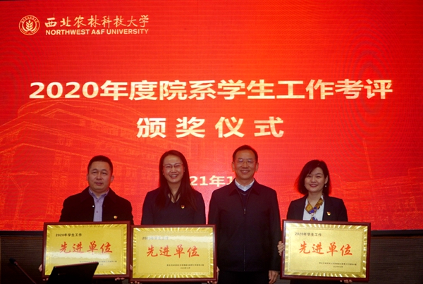 校党委副书记闫祖书对院系创新性、多角度、保质量落实立德树人根本任务给予了肯定。他表示,2020年广大学工干部与党中央同心同德、与国家和人民同向同行、与学校同频共振,以高度的责任感和使命感坚守疫情防控一线,守护了全校3万名学生的生命安全和身体健康,同时,在体制机制建设、学生思想引领、素质能力提升、荣誉表彰体系构建、文明教室创建和兜底工程等多方面取得突出成绩,尤其是在贯彻落实中央《深化新时代教育评价改革总体方案》中,交上了一份彰显“西农力量”、体现“西农效率”、展现“西农担当”的优异答卷。希望广大学工干部在2021年不忘初心,继续前进,围绕学生工作“四梁八柱”下足功夫,奋力书写我校学生工作新篇章。