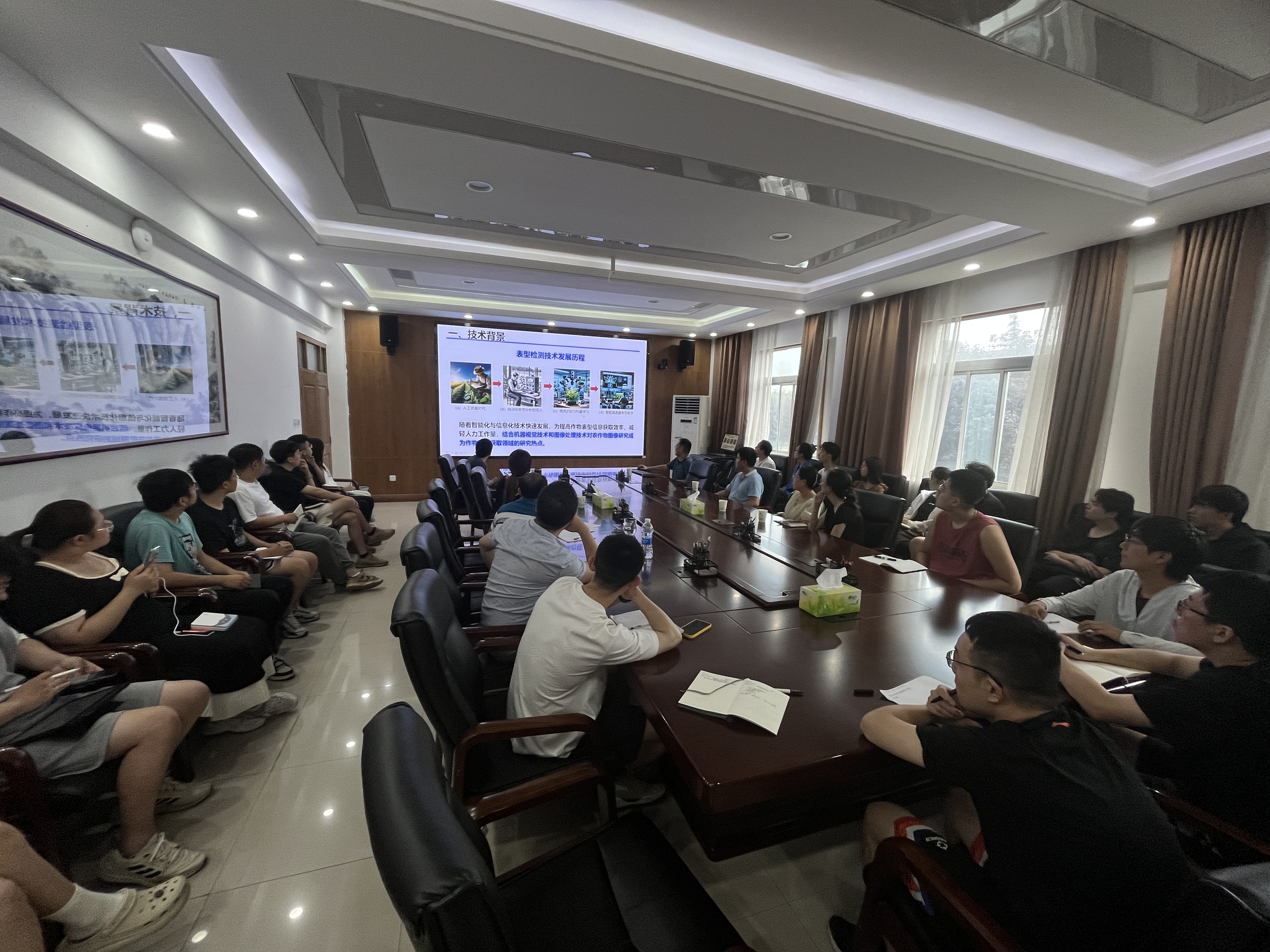 2024年7月29日,安徽农业大学信息与人工智能六合彩走势图 副院长饶元教授来六合彩走势图 进行学术交流,并在六合彩走势图 9227会议室做了题为“基于近端遥感的作物表型解析技术与装备”学术报告。报告会由副院长宋怀波主持,六合彩走势图 师生三十余人参加了此次学术报告。