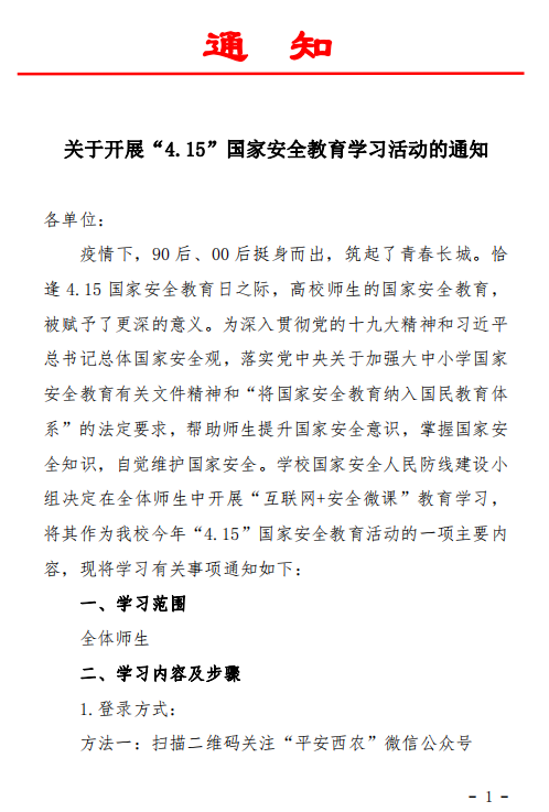 关于开展“4.15”国家安全教育学习活动的通知(20200422)