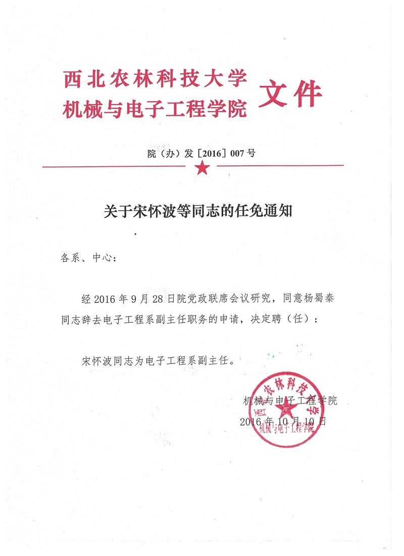 院(办)发[2016]007号关于宋怀波等同志的任免通知